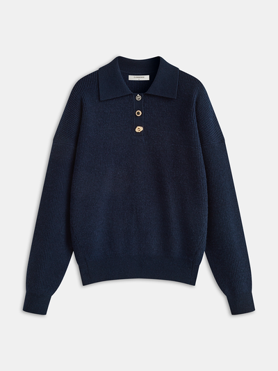 Contrast Trim Metal Button Wool-Blend Cardigan