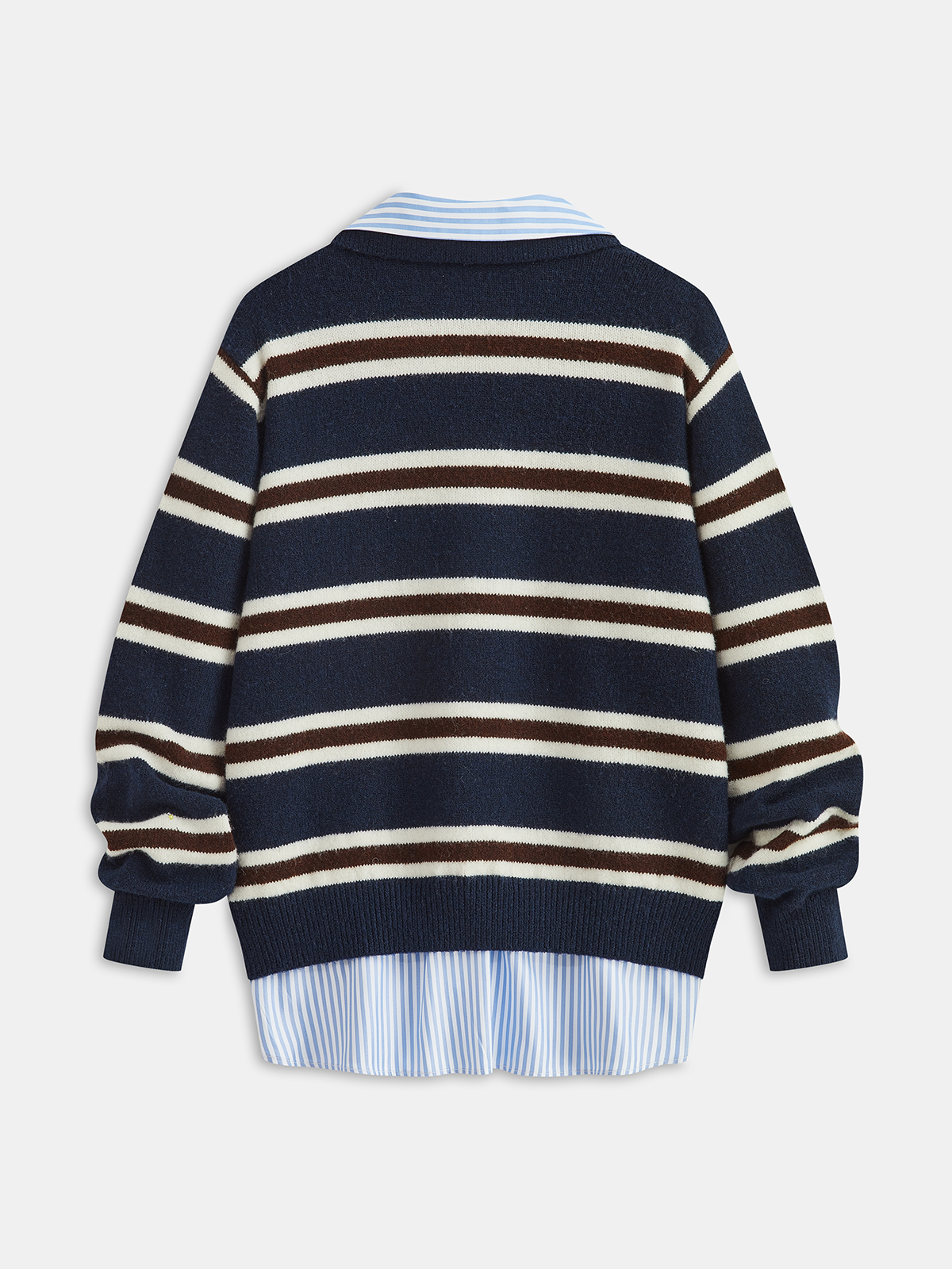 Shirt Panel Striped Polo Knit Sweater