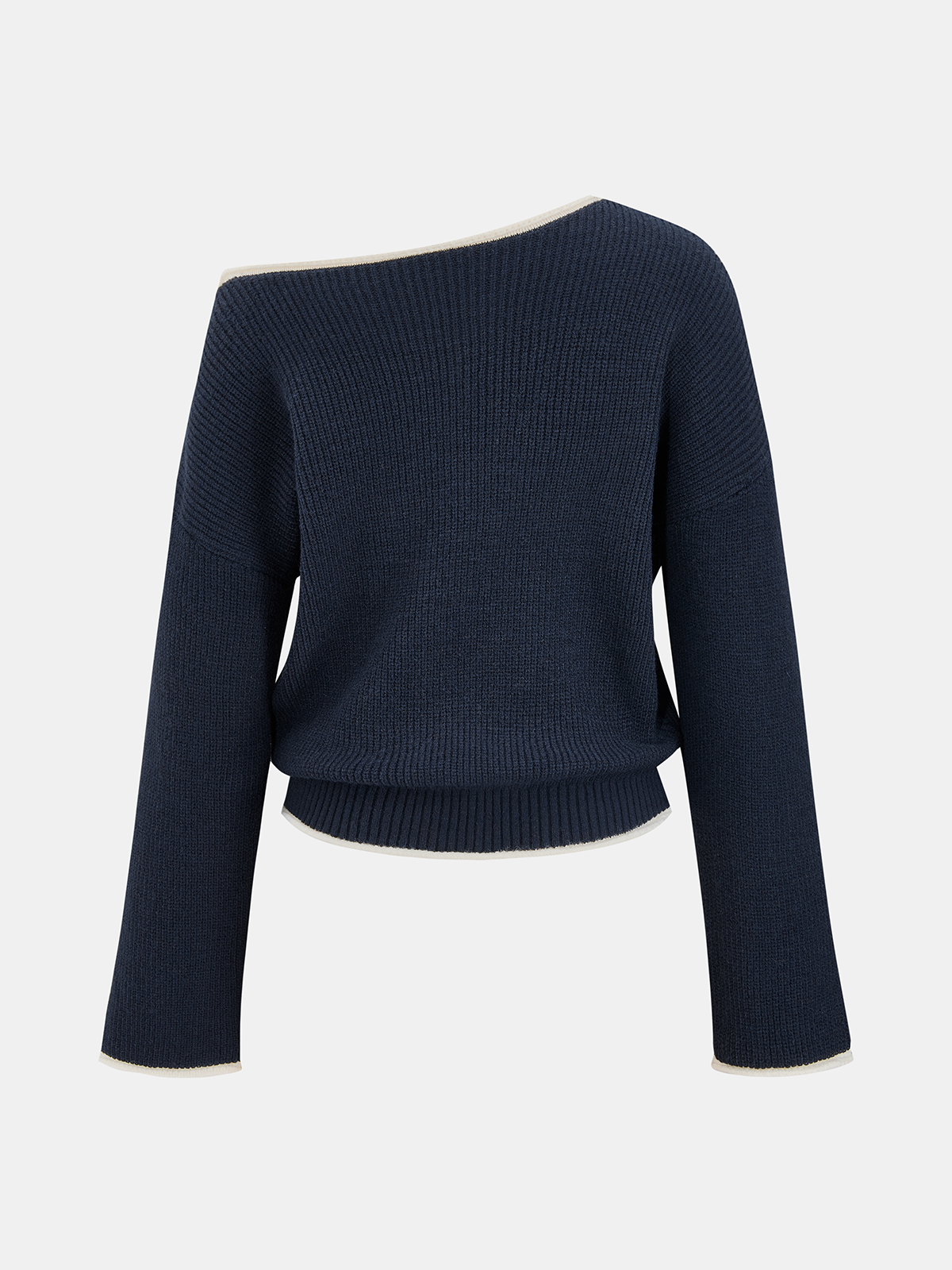 Contrast Trim Ribbed Off-Shoulder Sweater
