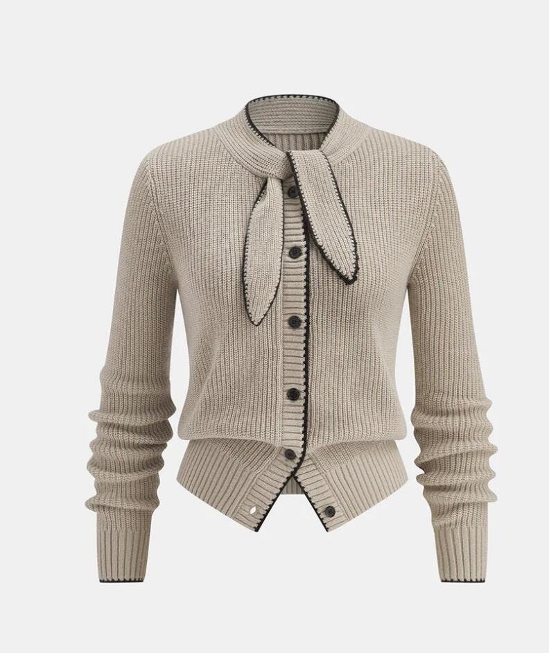 Tie Neck Contrast Trim Wool Blend Cardigan