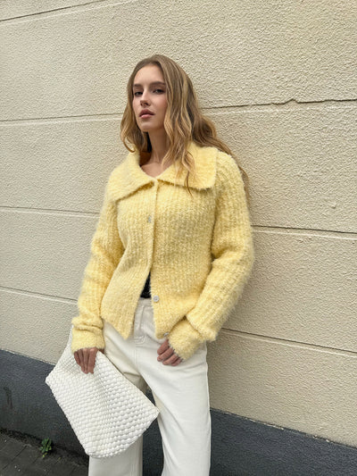 Wool-Blend Cable-Knit Metal Button Cardigan