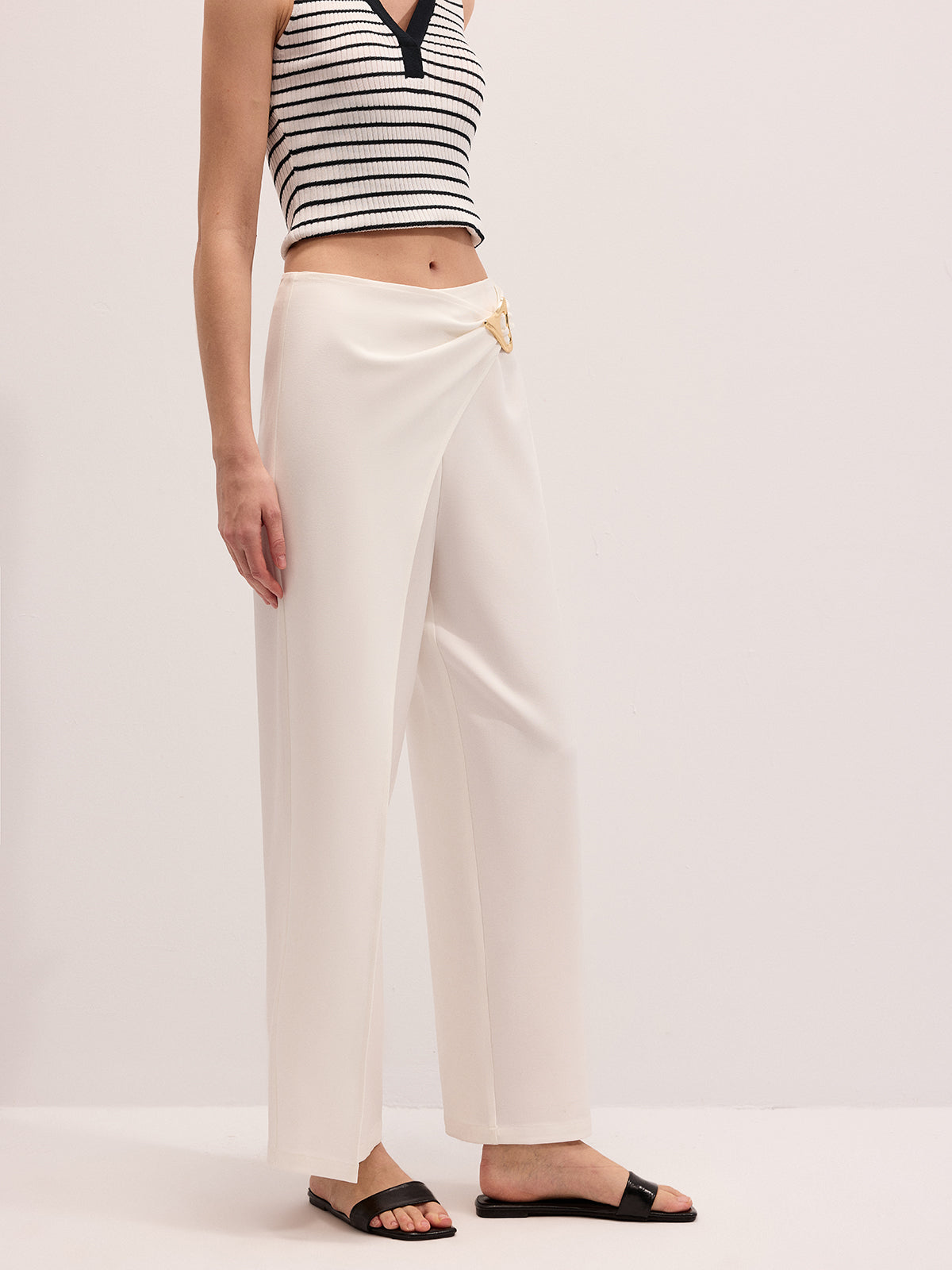 asymmetric,bottoms,clothing,coll:bottoms,coll:pants,coll:trending,coll:vacation,coll:weekend_getaway,coll:wide_leg,corpcore,cross wrap,in_six_month,long pants,metal detail,mid waist,minegence,no,non-stretch,not_low_sales,oa260108032,pants,photo_model,regular,regular fit,the linen ease,vacation,white,women,woven fabric