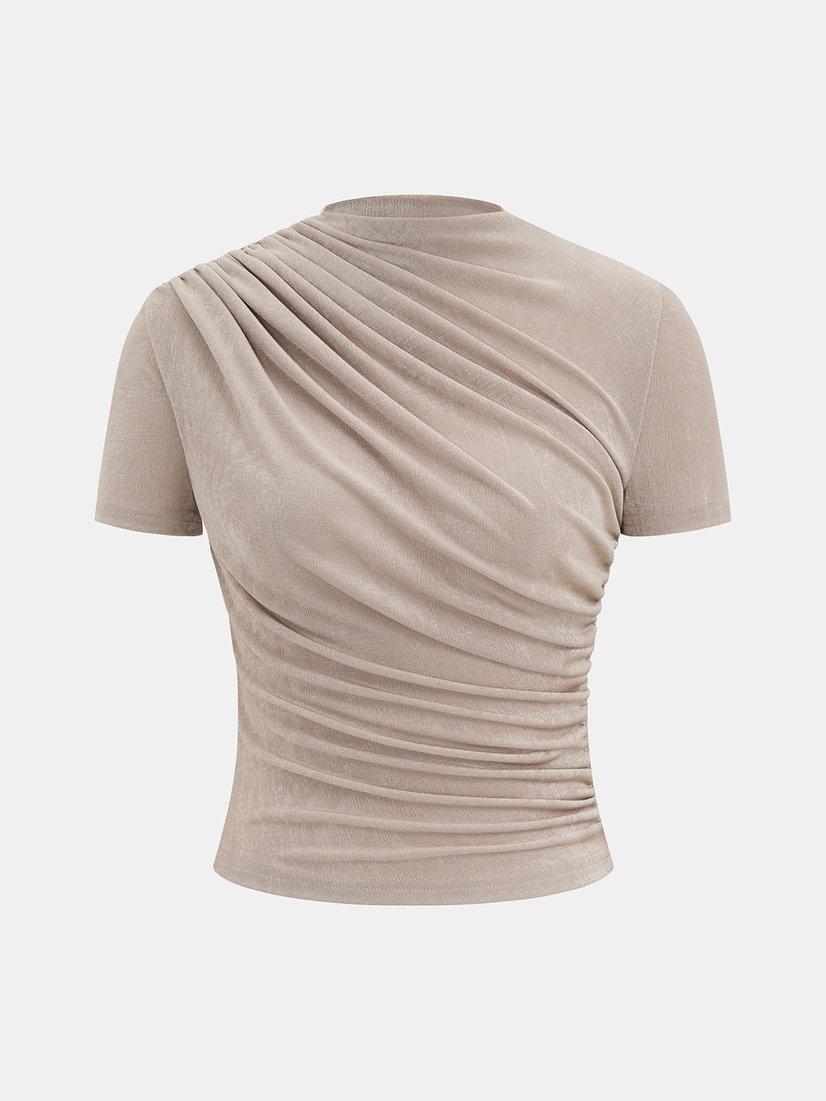 apricot,casual,clothing,coll:linen_cotton,coll:tops,corpcore,cotton,in_six_month,minegence,no,not_low_sales,oa251208040,regular,ruched,short sleeve,slight stretch,slim fit,stand collar,t-shirts,tops,women
