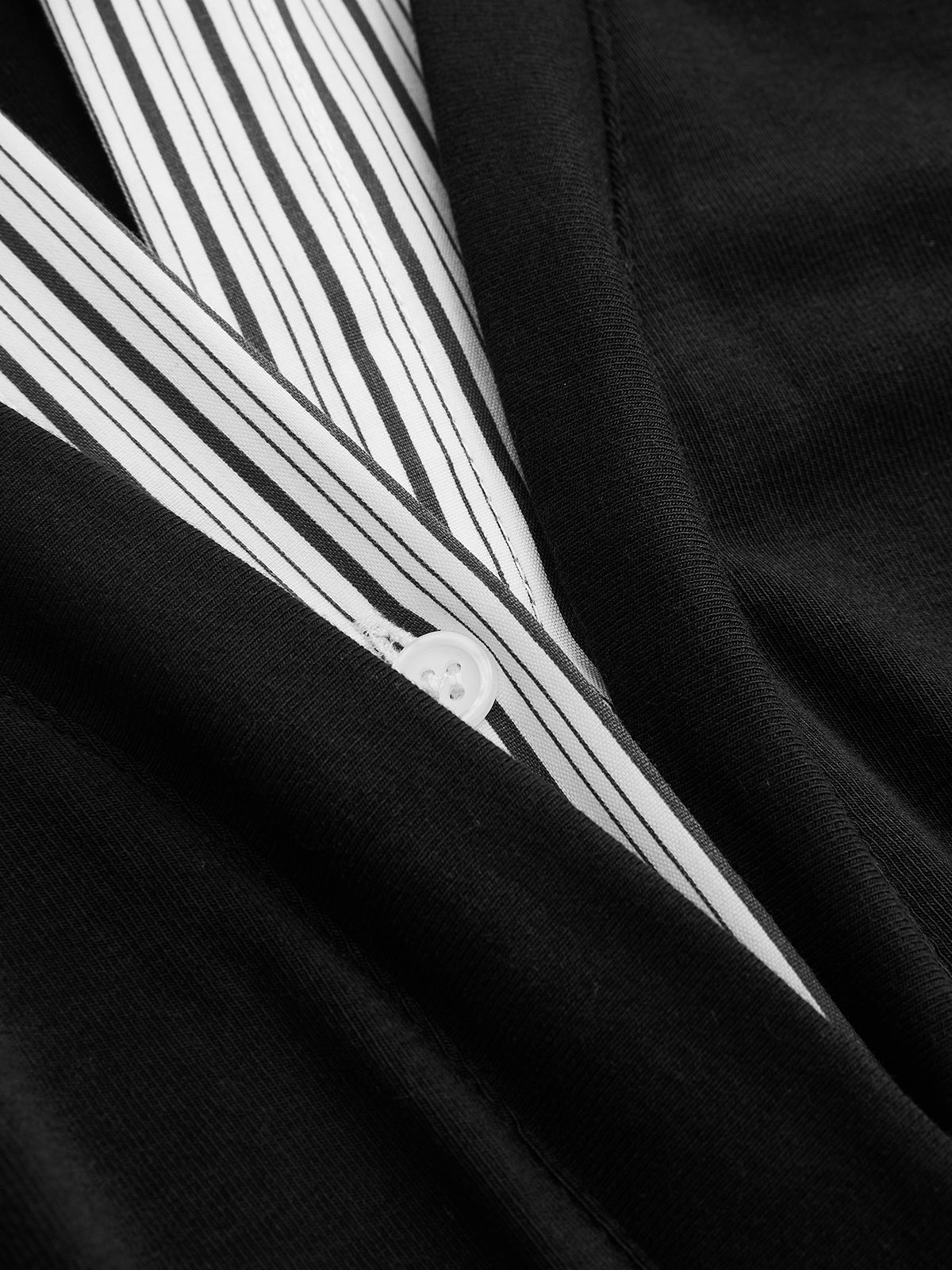 Mock Two-Piece Long-Sleeve Two Tone Polo Top