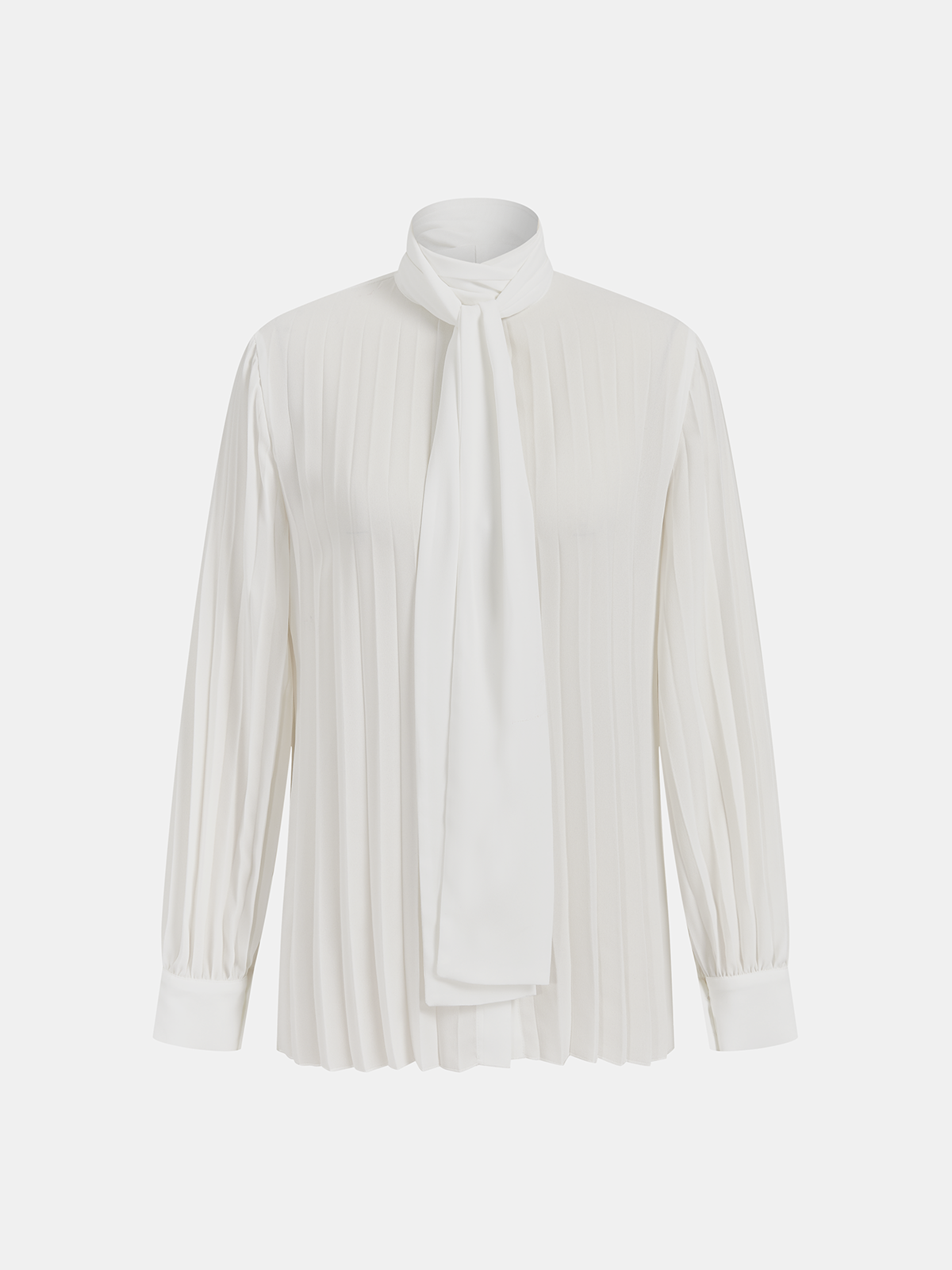 Semi-Sheer Tie-Neck Pleated Blouse
