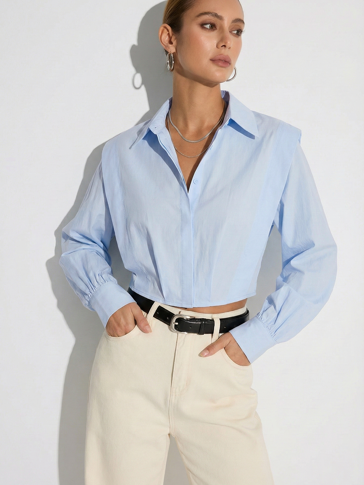 Wide-Shoulder Cropped Shirt
