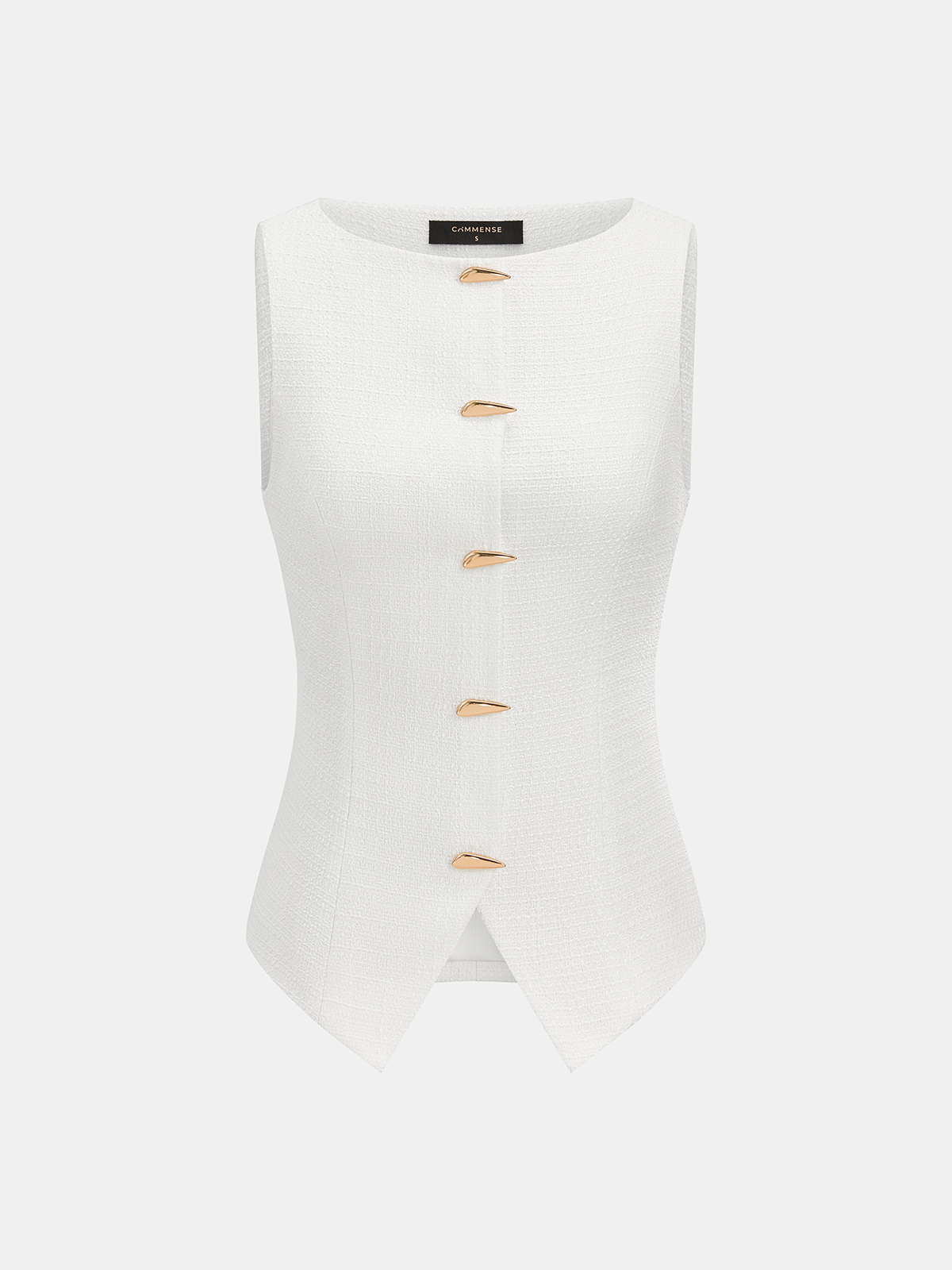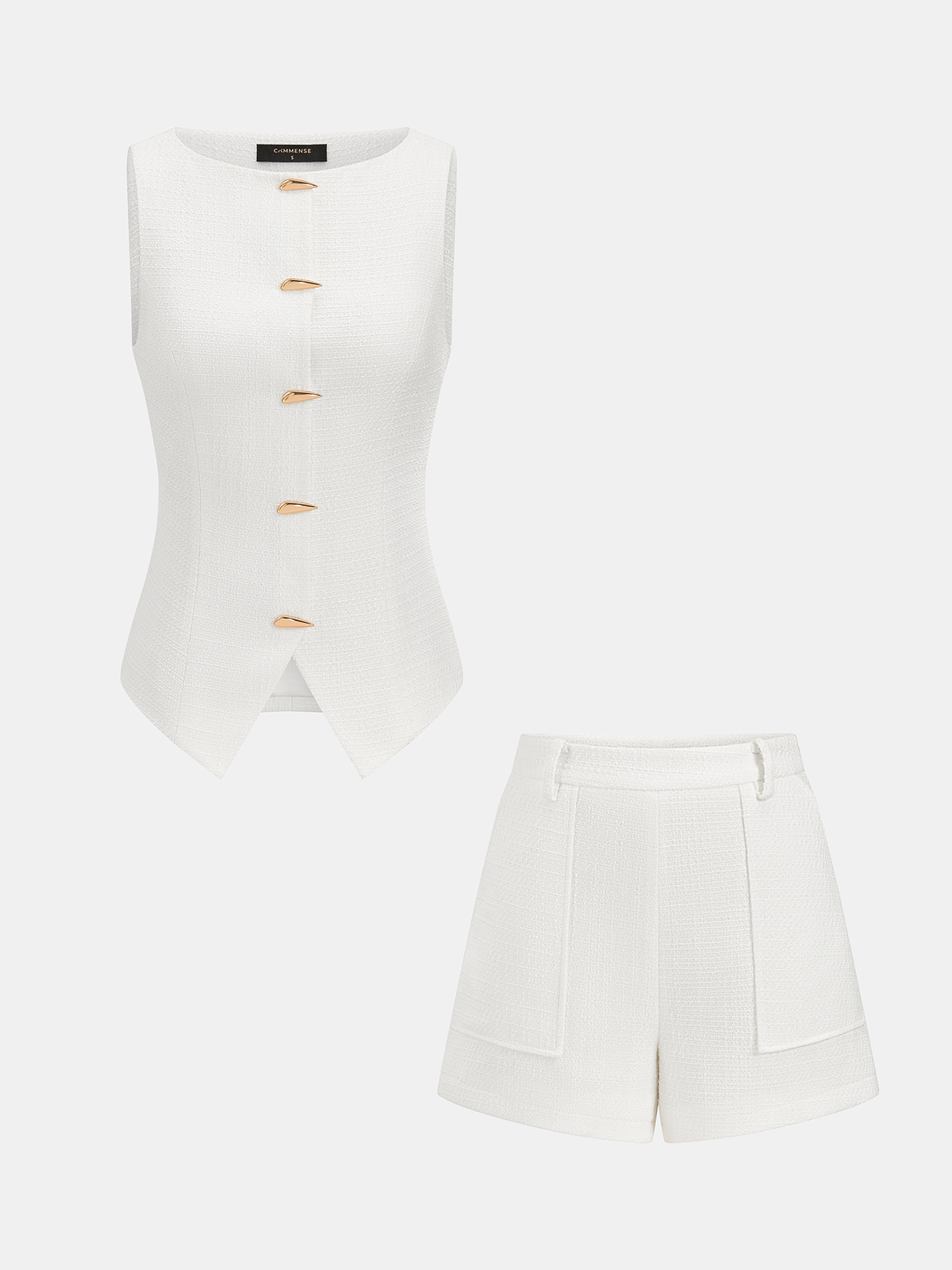 Tweed Sleeveless Metal Button Vest & Shorts Set