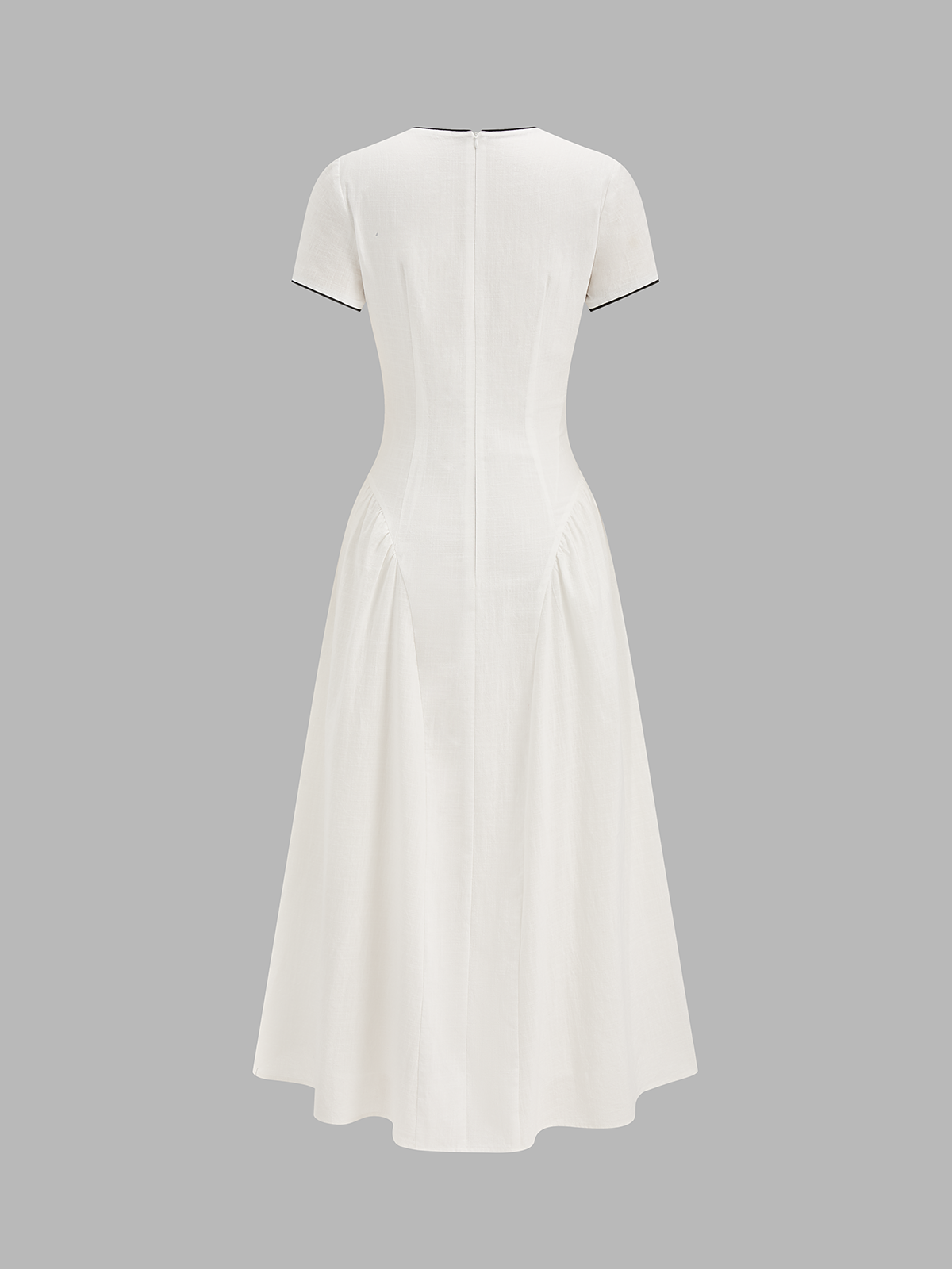 casual,clothing,coll:dresses,coll:linen_cotton,coll:vacation,coll:weekend_getaway,cotton blends,crew neck,dresses,feminine,in_six_month,invisible zipper,midi,no,non-stretch,not_low_sales,oa260131029,photo_ai,regular,regular fit,ribbon detail,ruched,short sleeve,vacation,white,women
