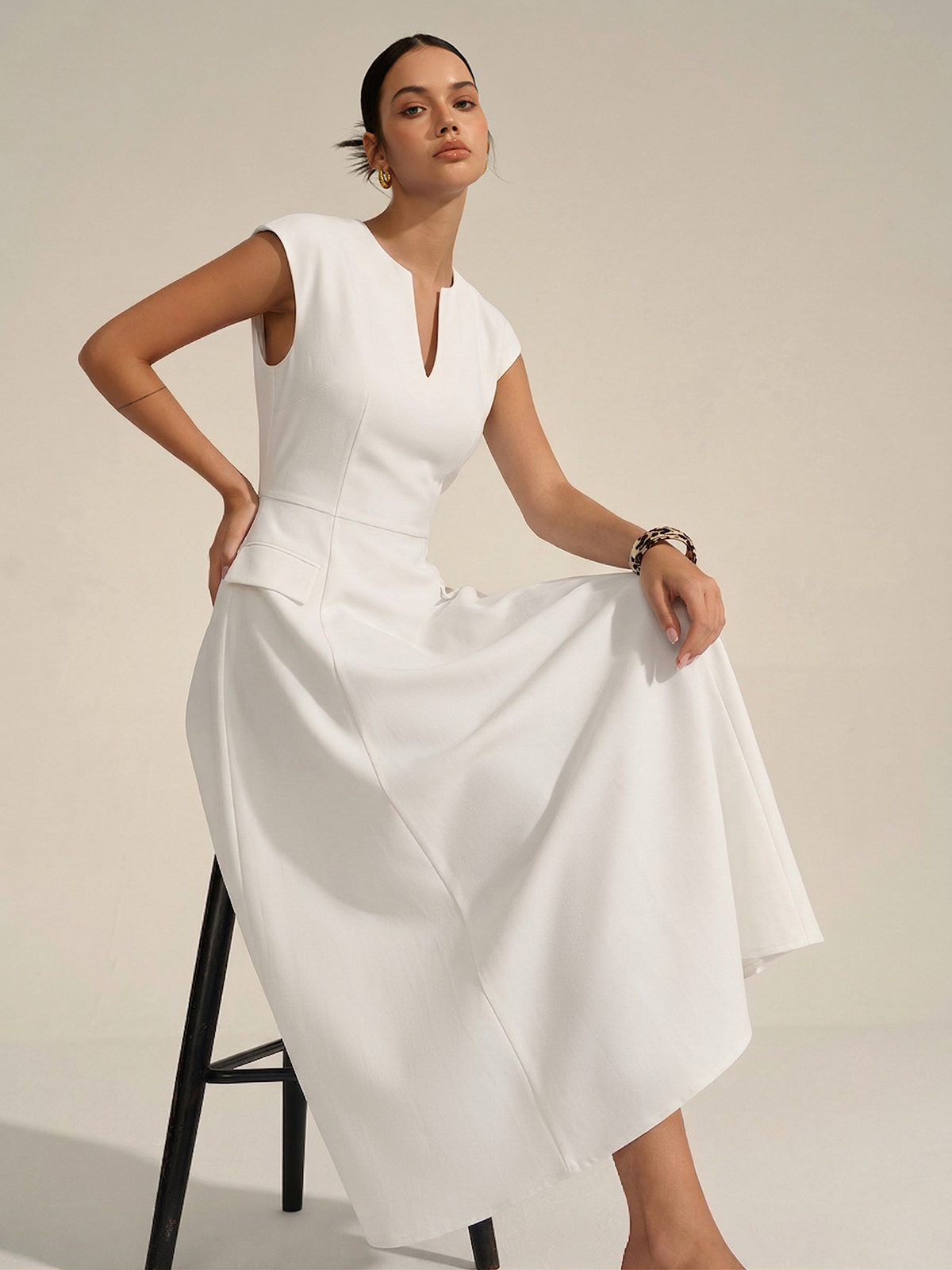 casual,clothing,coll:dresses,corpcore,crew neck,dresses,in_six_month,invisible zipper,midi,minegence,no,not_low_sales,oa260131030,photo_ai,regular,regular fit,short sleeve,slight stretch,umbrella hem,white,women,woven fabric