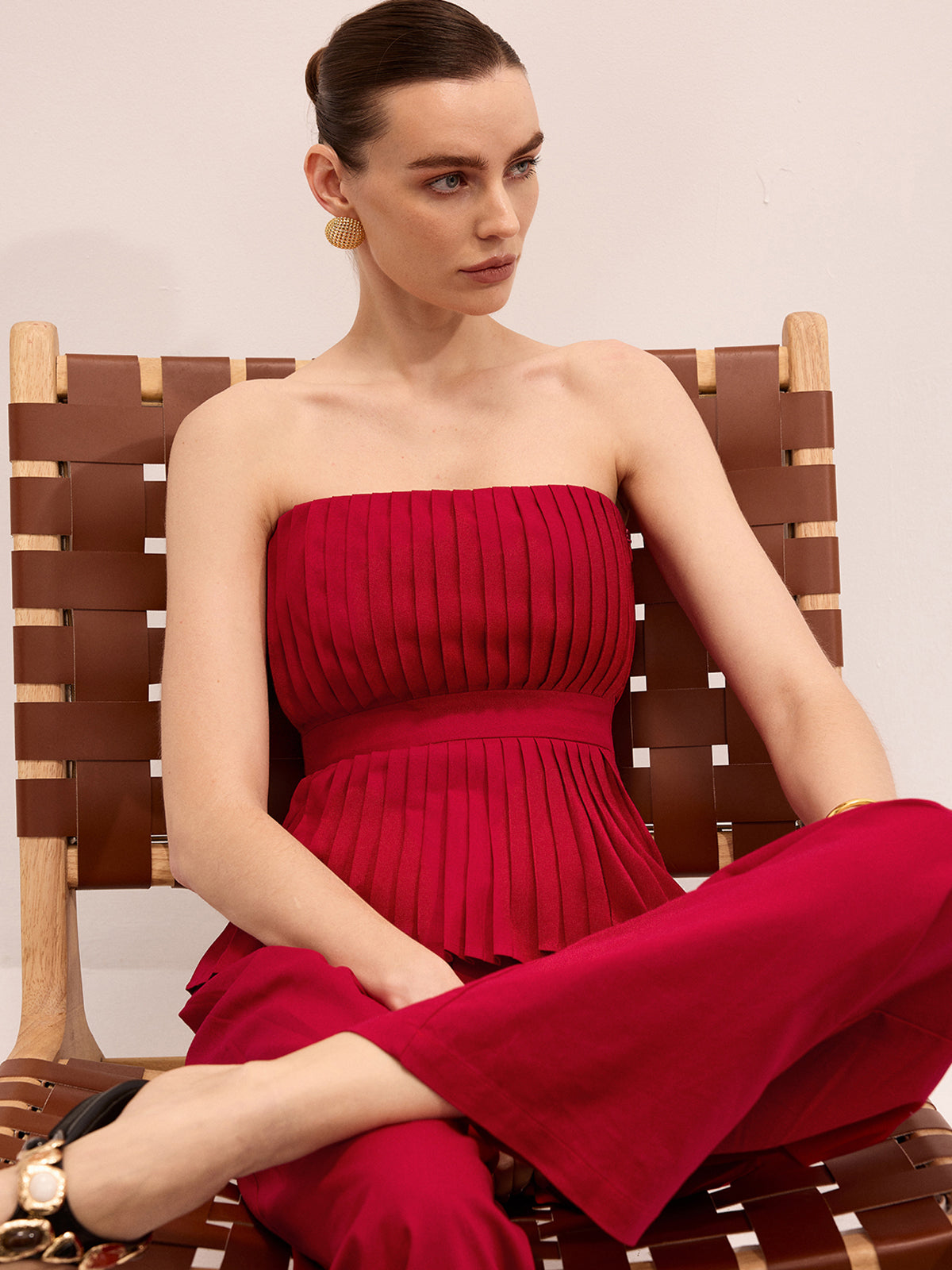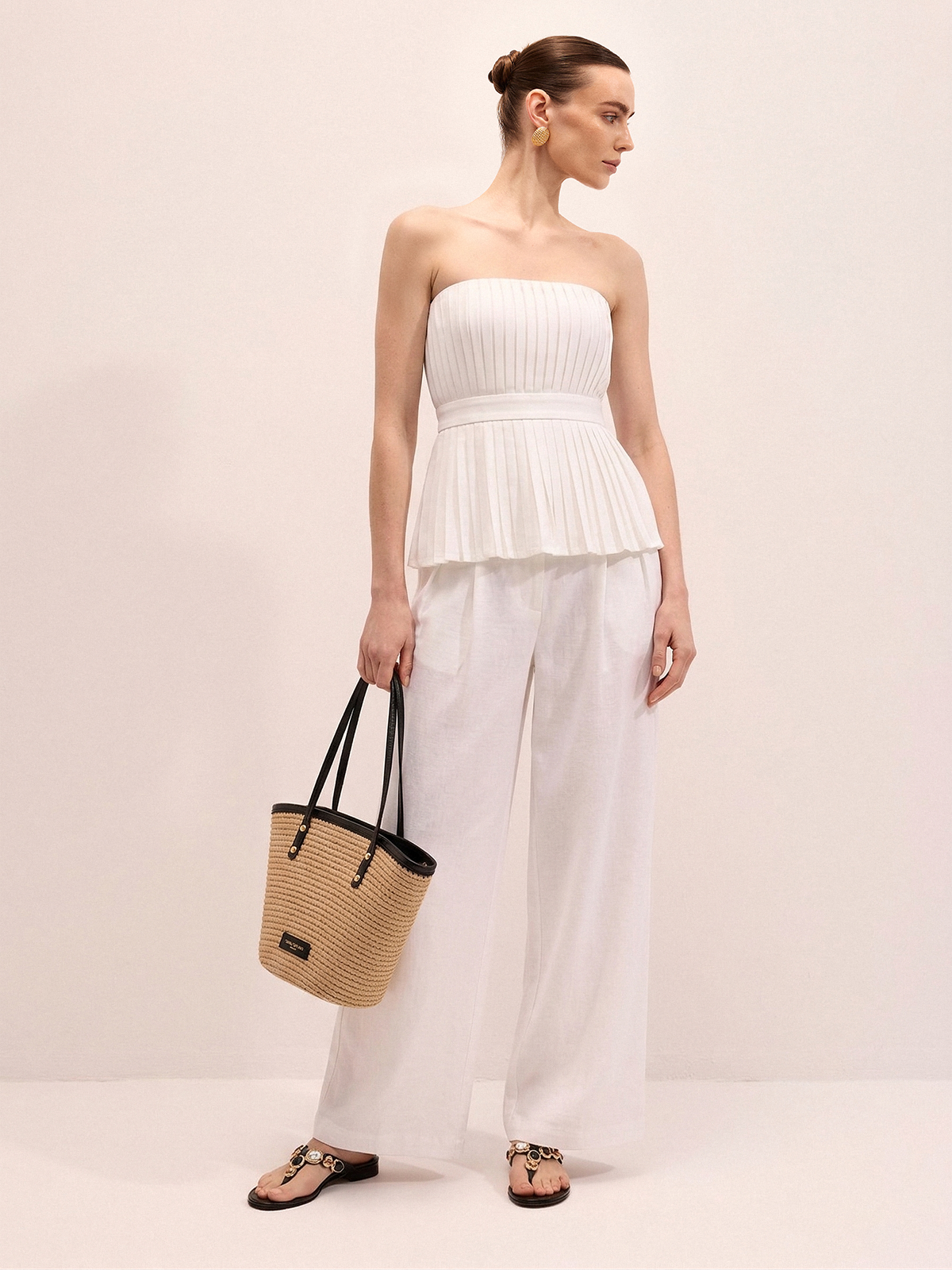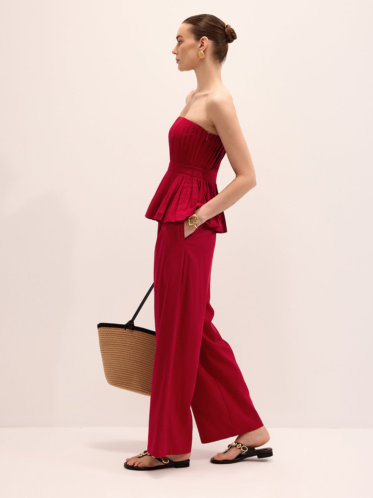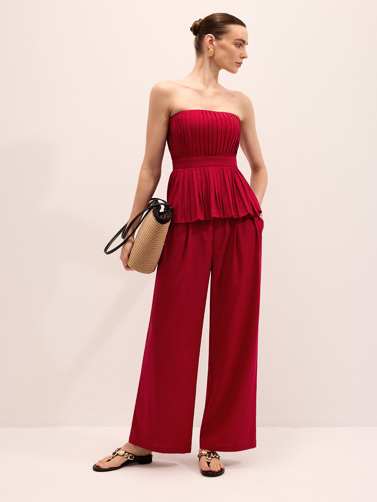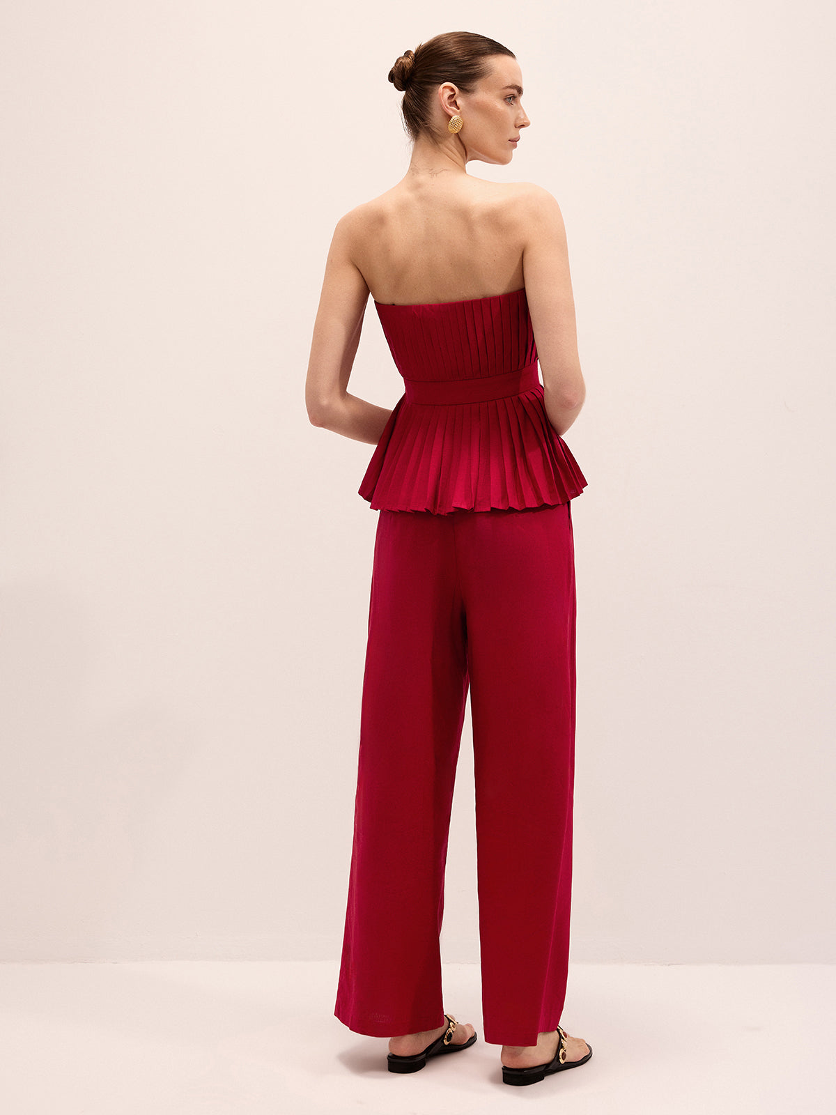 Strapless Pleated Linen Blend Top & Pants Set
