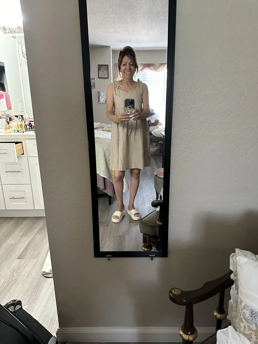 The dress doesn’t not fit true to size and the material does not feel right. It’s definitely purely made. It was a big mistake ordering it. I will just use it as a cleaning rag. What a waste