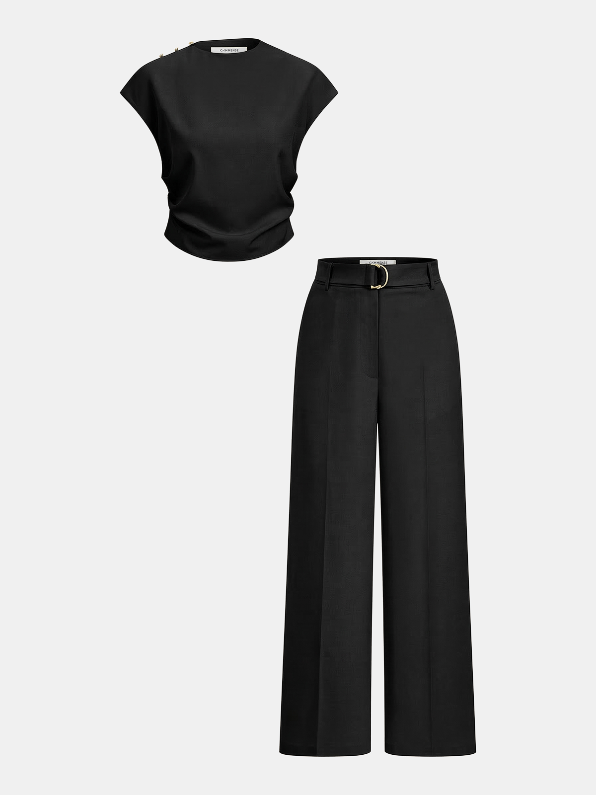 Sleeveless Ruched Top & Wide-Leg Pants Set
