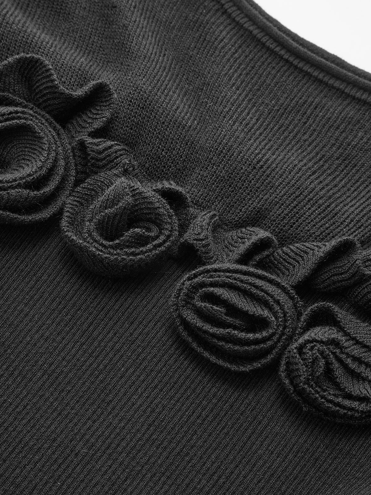 3D Floral Ruffle Trim Sheer Panel Knit Top
