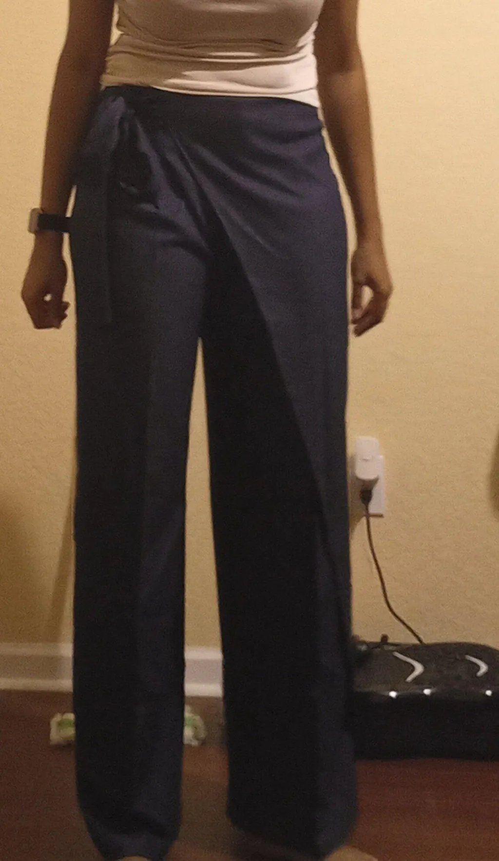 Puddle Hem Asymmetric Wrap Wide-Leg Pants
