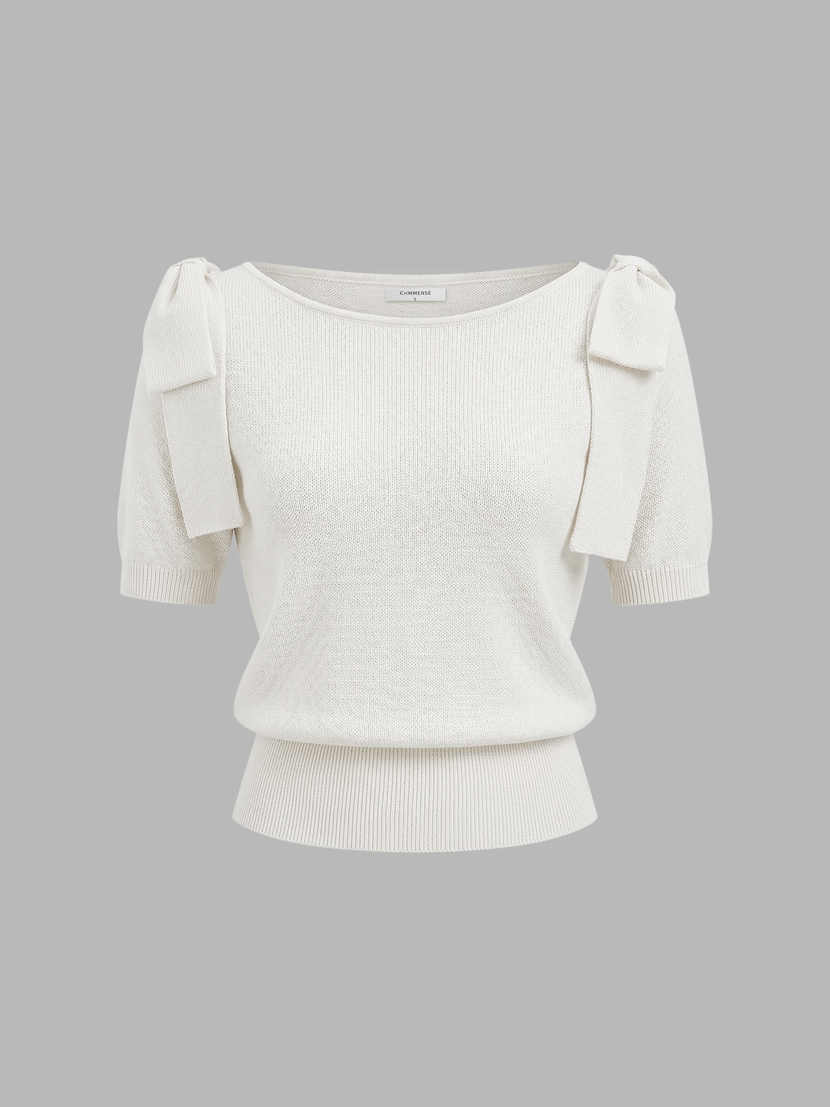 Bow Shoulder Short Sleeve Knit Sweater