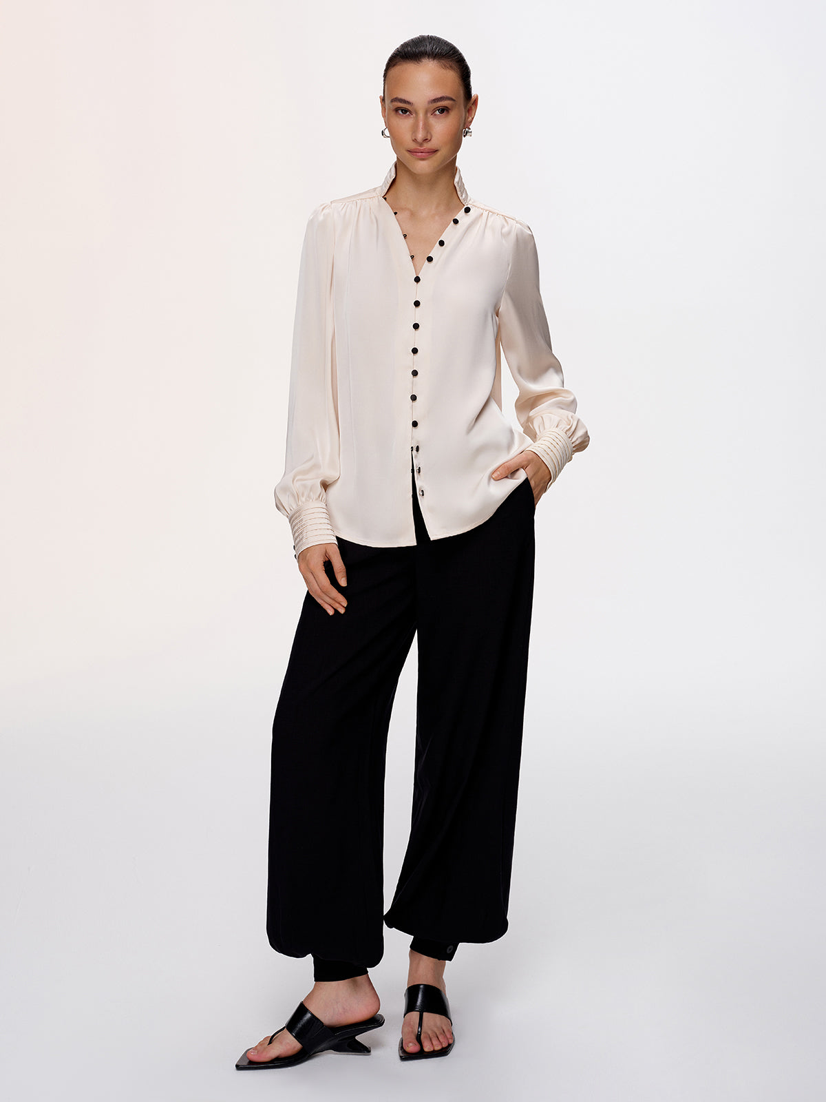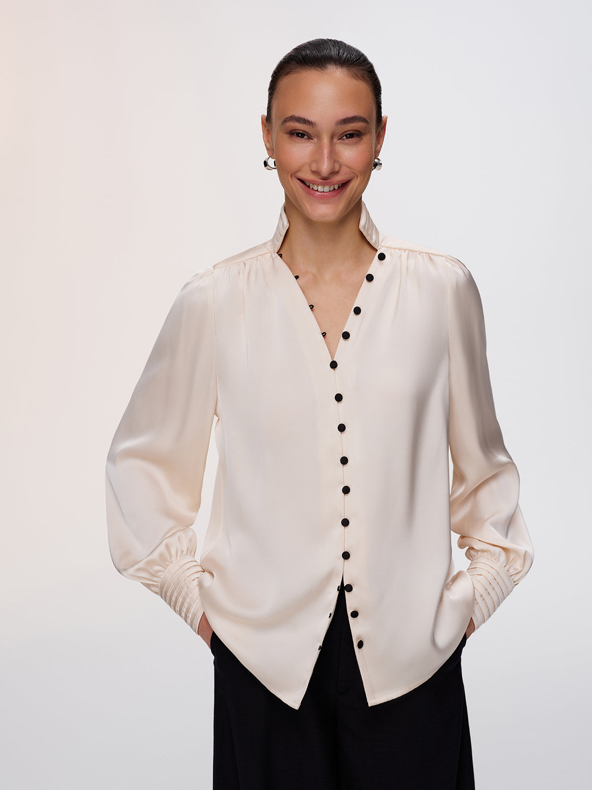 apricot,blouses,casual,clothing,coll:blouses_shirts,coll:tops,corpcore,feminine,half open collar,in_six_month,long sleeve,no,non-stretch,not_low_sales,oa251127099,photo_model,regular,regular fit,ruched,satin,tops,women