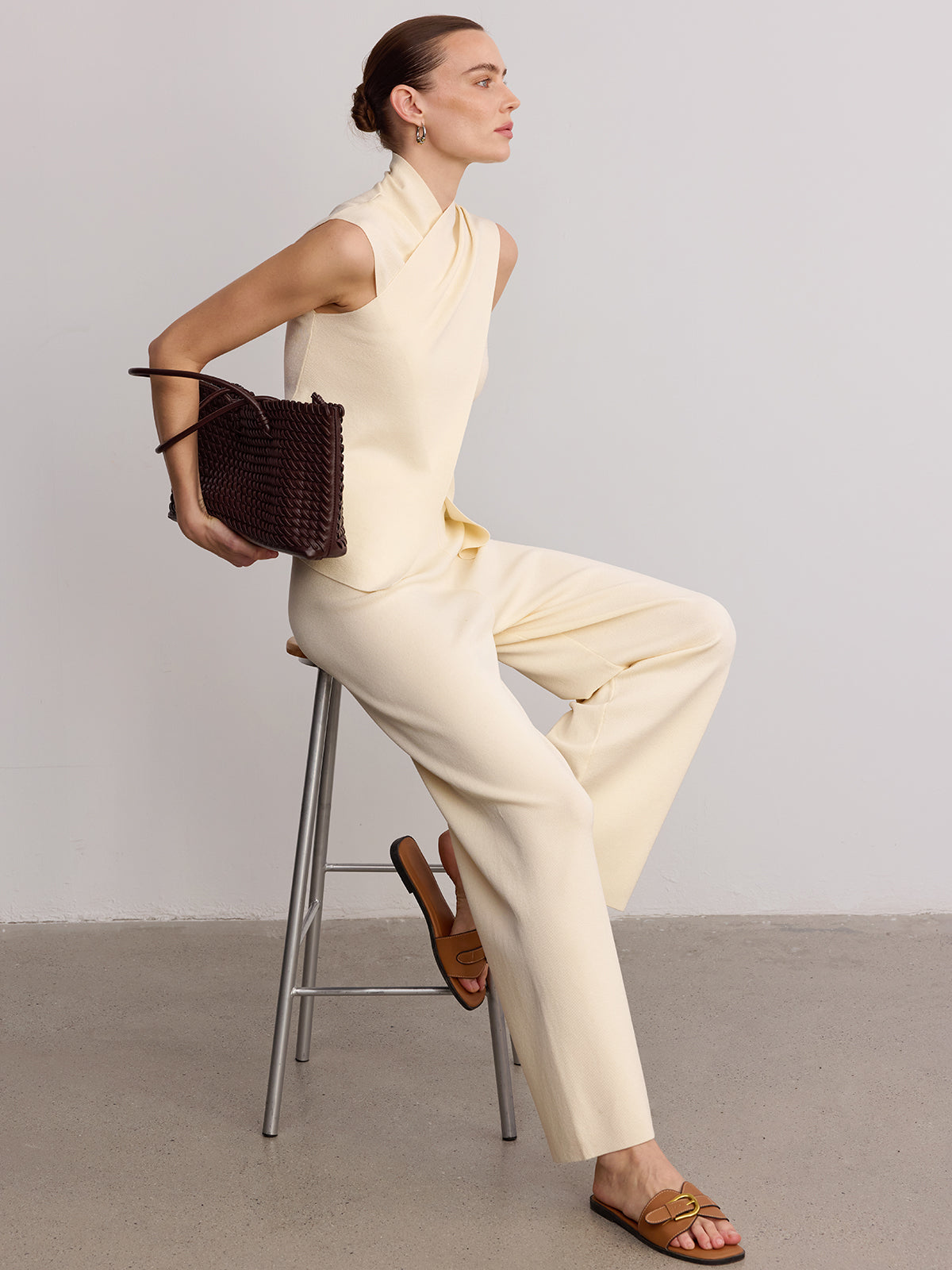 asymmetric,beige,casual,clothing,coll:bottoms,coll:matching_sets,coll:trending,coll:vacation,coll:weekend_getaway,cross wrap,elastic waistband,high stretch,in_six_month,knit,minegence,not_low_sales,oa251107084,pant sets,photo_model,regular,sets,shift,summer hues,vacation,women