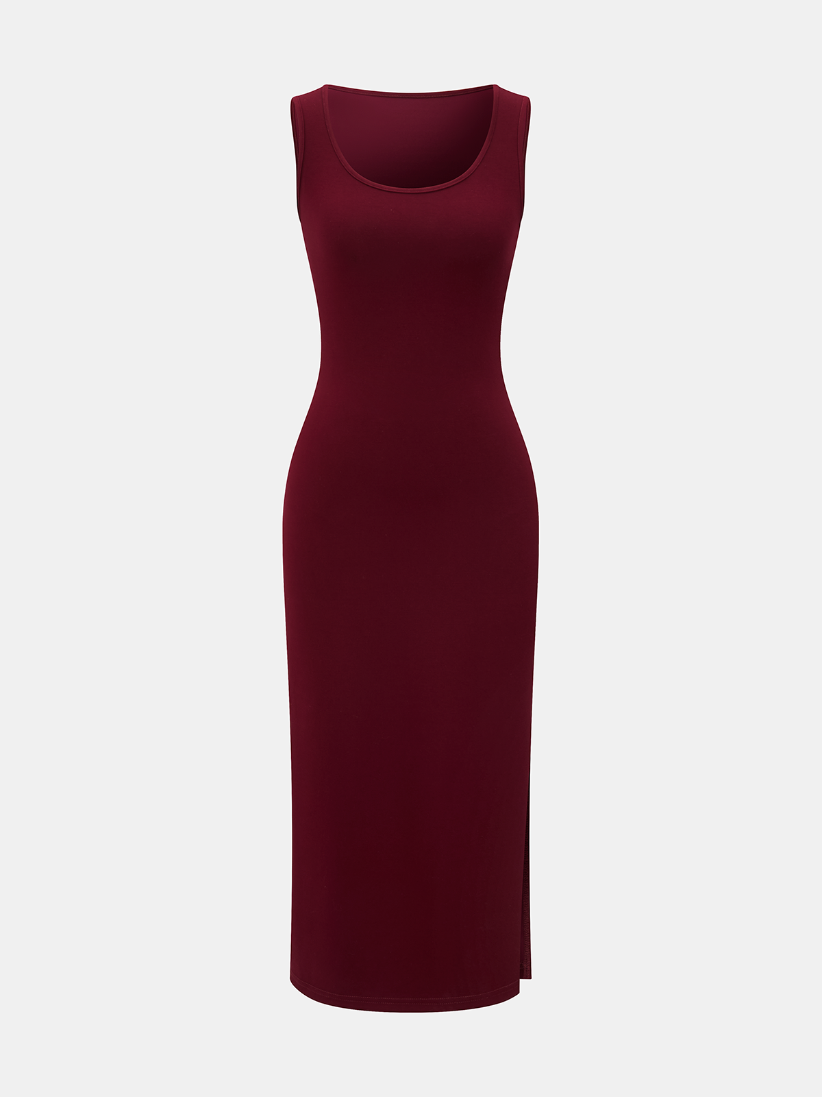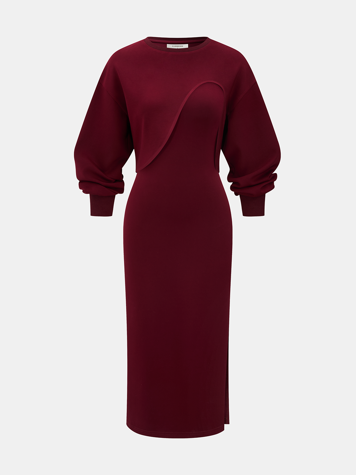 burgundy,clothing,coll:dresses,coll:trending,corpcore,crew neck,date,dresses,high stretch,in_six_month,long sleeve,midi,minegence,no,not_low_sales,oa251113010,regular,slim fit,sweatshirt fabric,winter hues,women