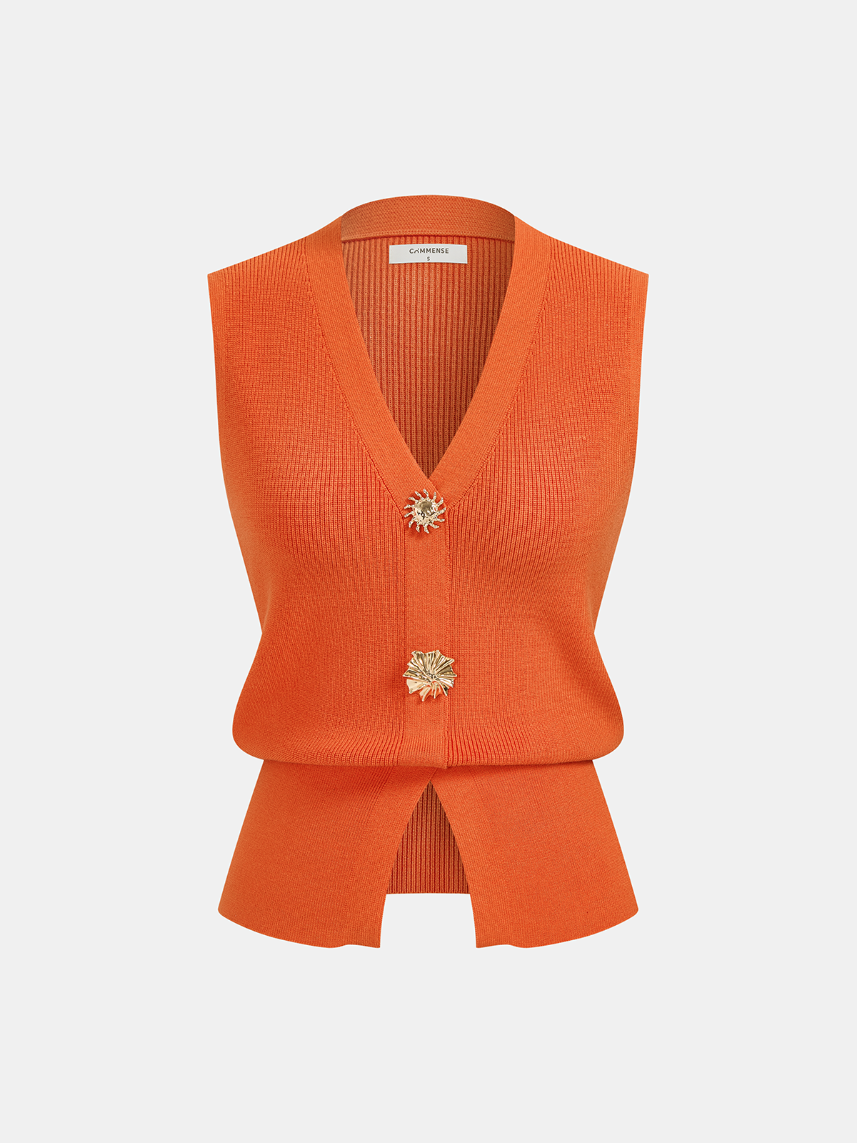 bloused waist,clothing,coll:knitwear,coll:sweaters_cardigans,coll:tops,coll:trending,coll:vacation,coll:vests,coll:weekend_getaway,corpcore,feminine,in_six_month,knit,knitwear,metal detail,not_low_sales,oa251217024,orange,regular,regular fit,slight stretch,summer hues,sweater vests,vacation,women