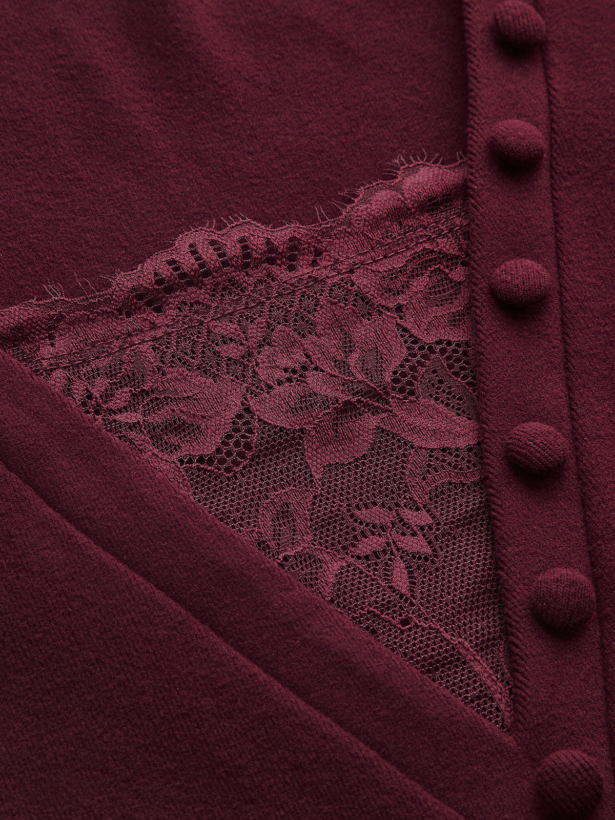 burgundy,casual,clothing,coll:tops,coll:trending,fall,in_six_month,jersey,lace,long sleeve,medium stretch,minegence,no,not_low_sales,oa251105060,regular,regular fit,t-shirts,tops,v-neck,winter,winter hues,women