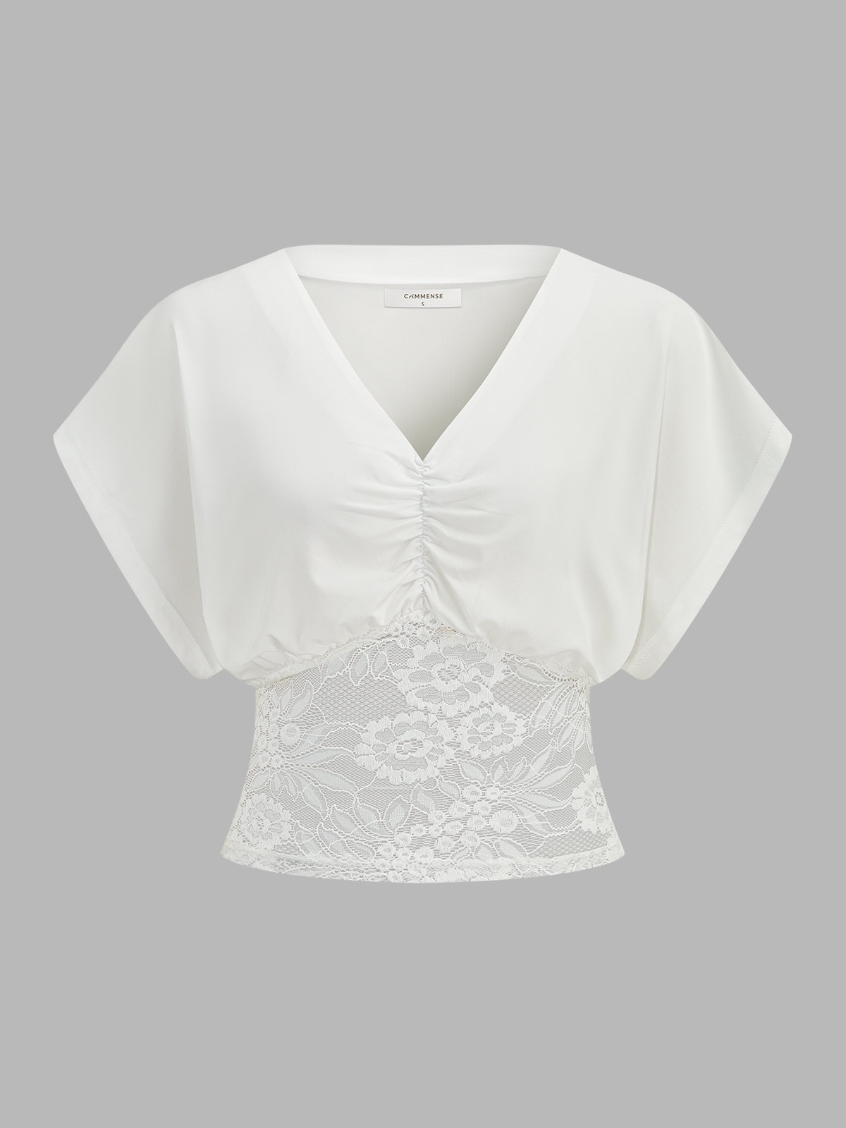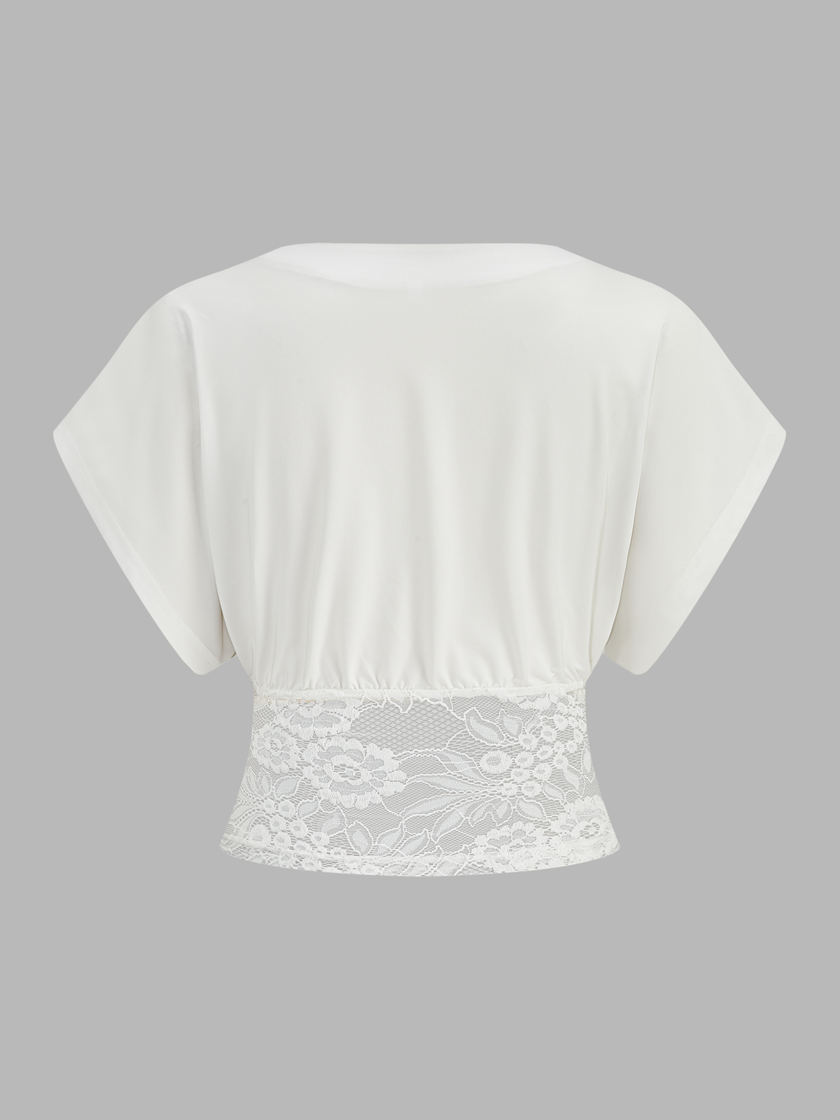 bloused waist,casual,clothing,coll:tops,crop top,date,feminine,in_six_month,jersey,lace,medium stretch,no,not_low_sales,oa260122059,regular fit,ruched,short sleeve,t-shirts,thin,tops,v-neck,white,women