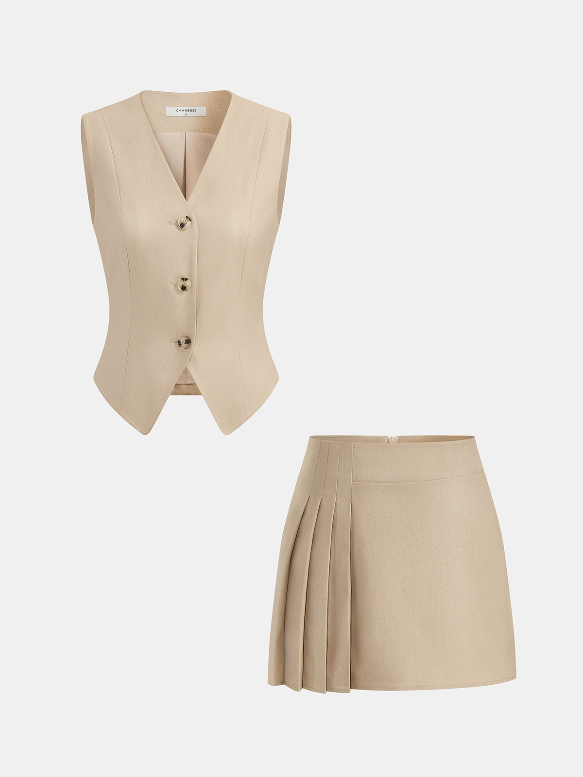 asymmetric,clothing,coll:linen_cotton,coll:matching_sets,coll:skirts,coll:vests,corpcore,date,in_six_month,khaki,linen blend,minegence,non-stretch,not_low_sales,oa260107062,pleated,regular,sets,skirt sets,slim fit,women