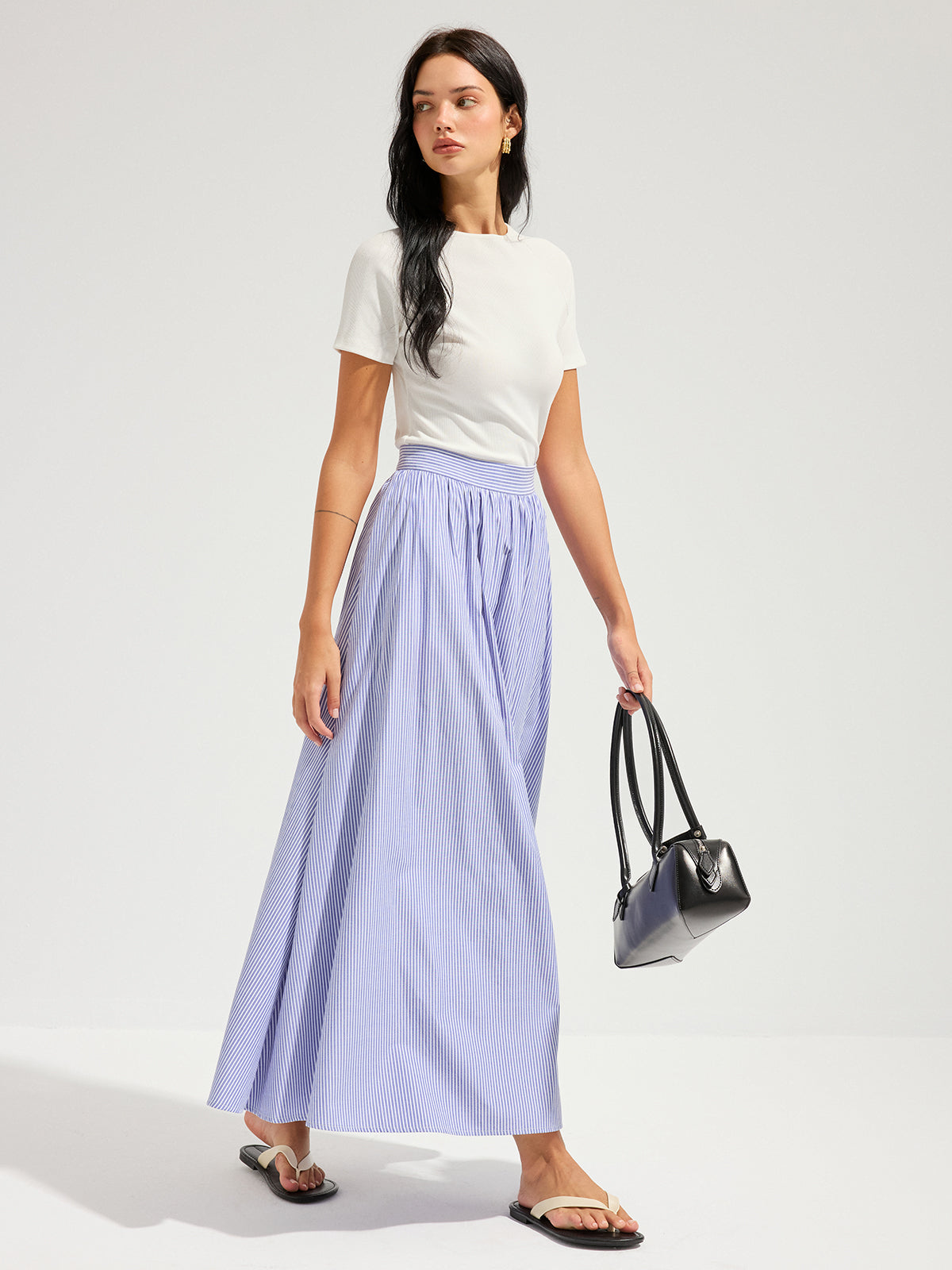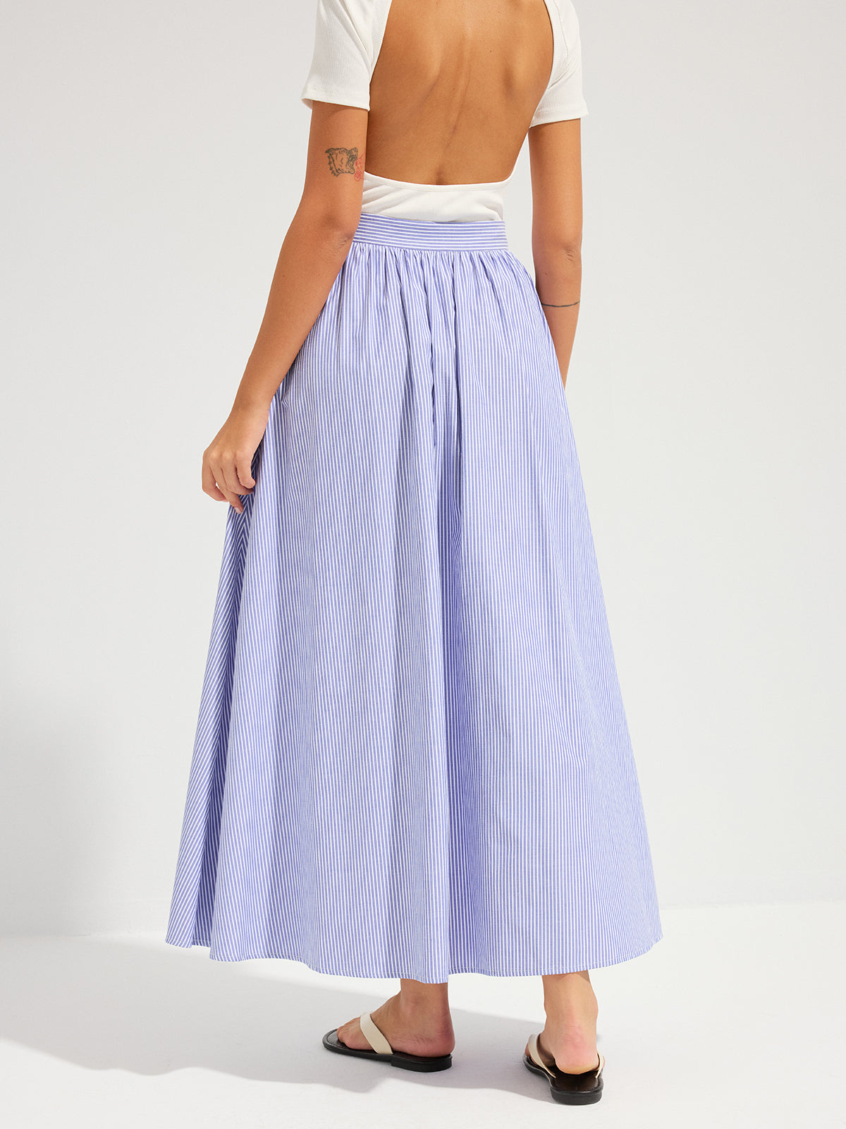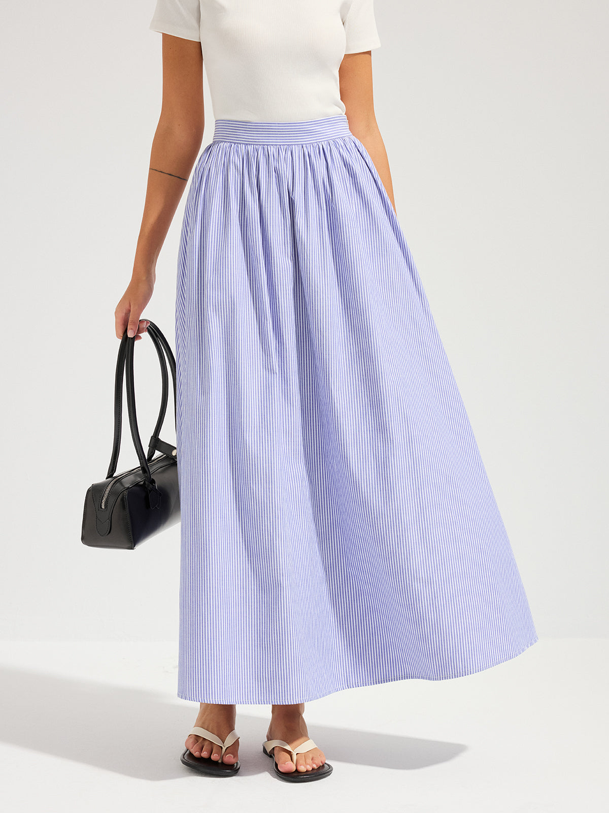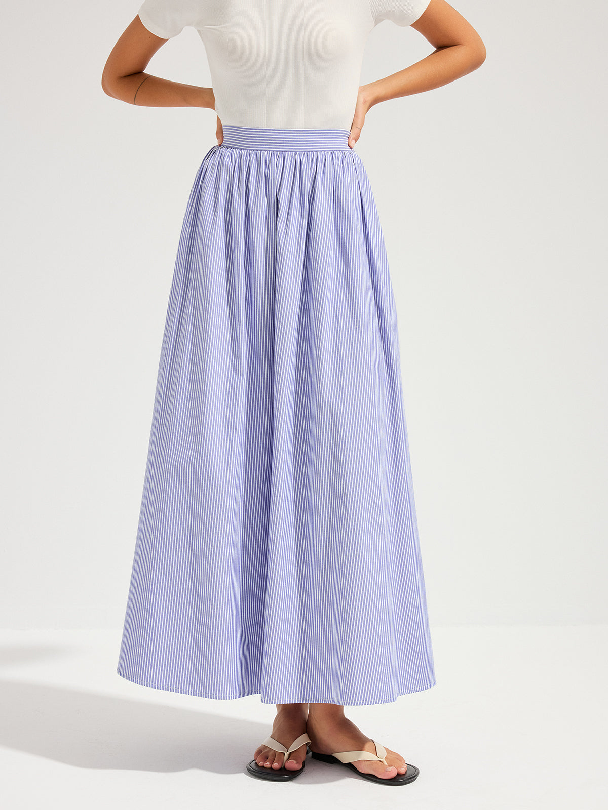 blue,bottoms,casual,clothing,coll:bottoms,coll:skirts,date,in_six_month,invisible zipper,maxi,mid waist,minegence,no,non-stretch,not_low_sales,oa260119050,oversized,photo_model,regular,skirts,stripe,women,woven fabric