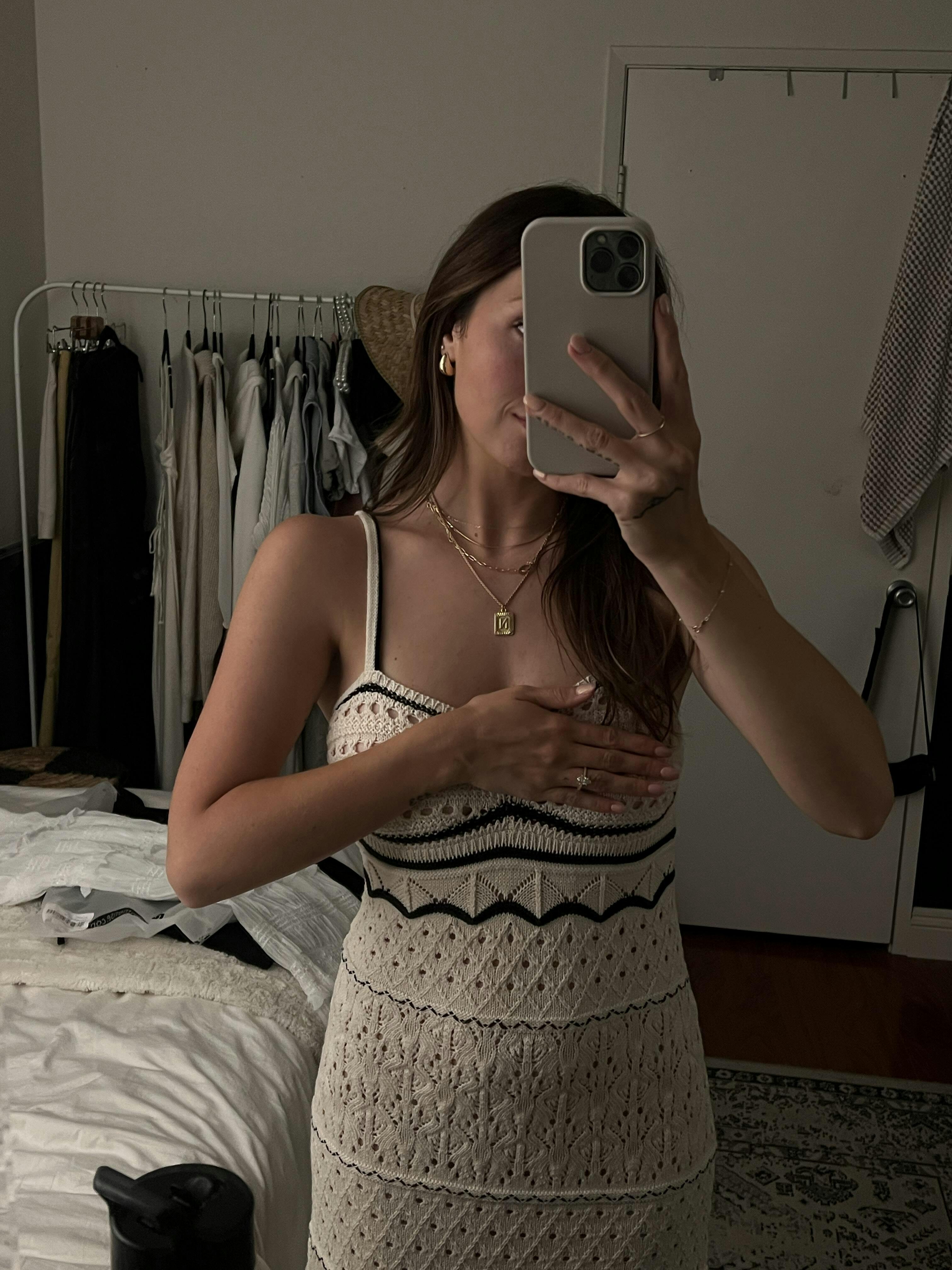 This dress is the best purchase I made so far! Fit like a glove! Material is soft and crochet design is very flattering! I am 120lb and wearing size XS. Obsessed with this dress! Definitely get it!