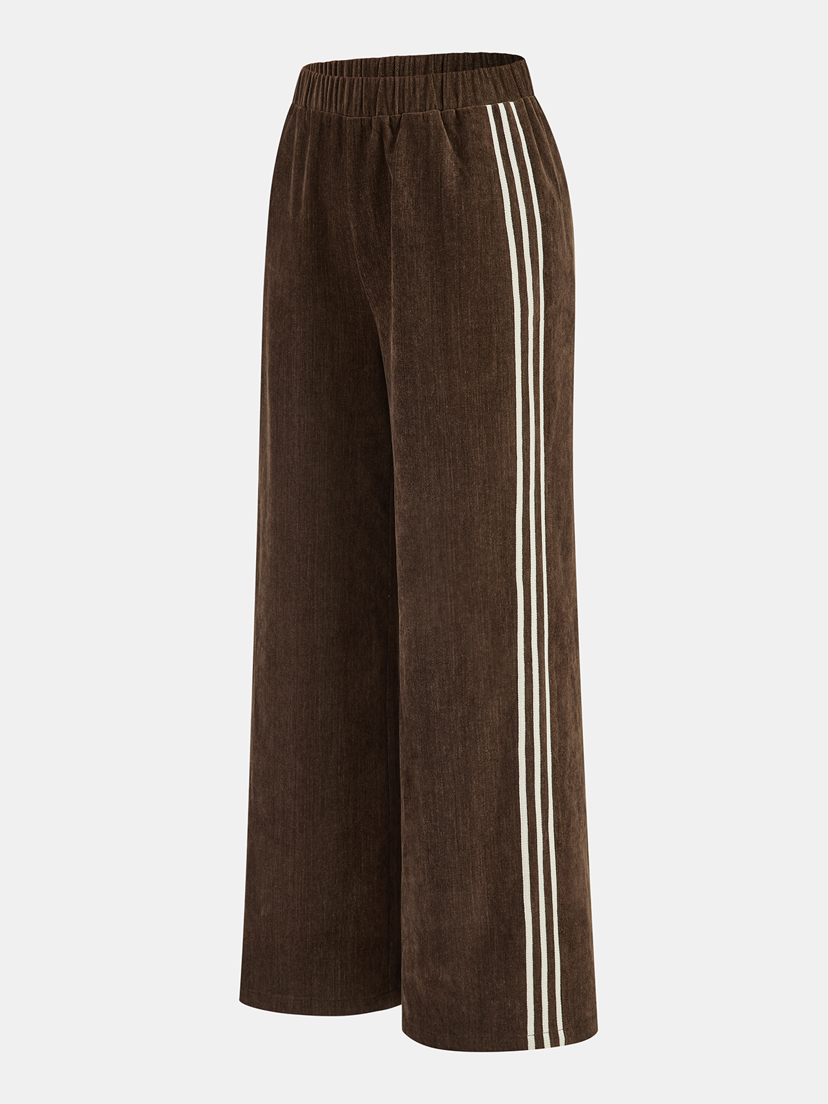 basic - fabric,bottoms,brown,casual,clothing,coll:bottoms,coll:pants,coll:trending,coll:wide_leg,corduroy,corpcore,elastic waistband,fall,in_six_month,long pants,mid waist,minegence,no,non-stretch,not_low_sales,oa251030117,pants,regular,regular fit,wide leg,winter,women
