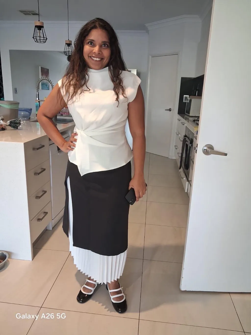 It’s a nice, professional top for work. The light blue is a nice color, and the material is slightly thick, not transparent. It’s a little awkward to get on with the full back zip. I am petite and the fit was good, not tight. I got compliments.