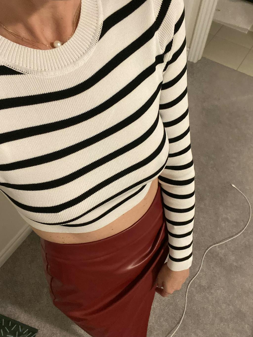 I had read it was very cropped, and it is. I would consider sizing up if I ordered again. The material is a decent quality, but not particularly soft and if it was just one inch longer I think it would have worked with more things for me (I wore a very high waisted skirt as I felt it was showing too much skin with the wide leg pants I wanted to pair with it). I have a smaller chest, but I would definitely size up maybe 2 sizes with a larger chest. Because the fabric is so tight, it only moves up as the night goes on and I was pulling it down. It's tight in the arms too, but it's cute and I like it. It might work on a cool night in summer with high-waisted shorts.