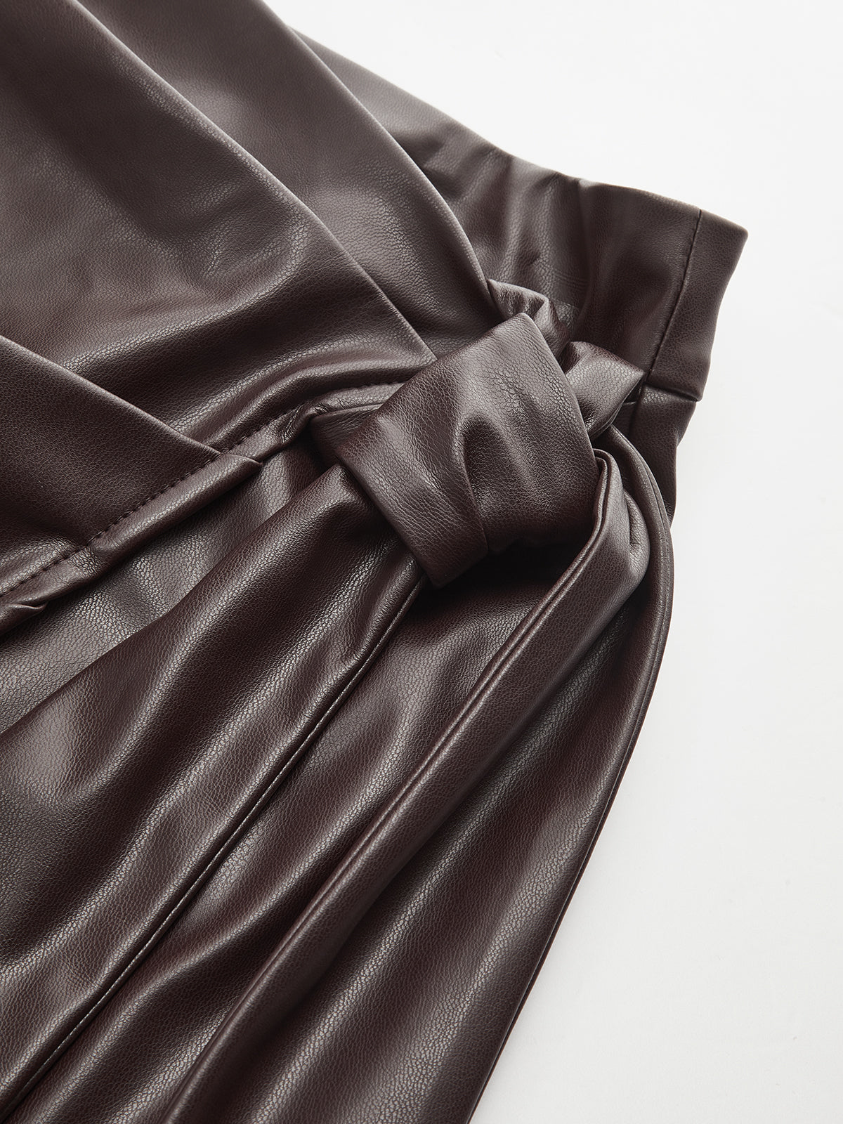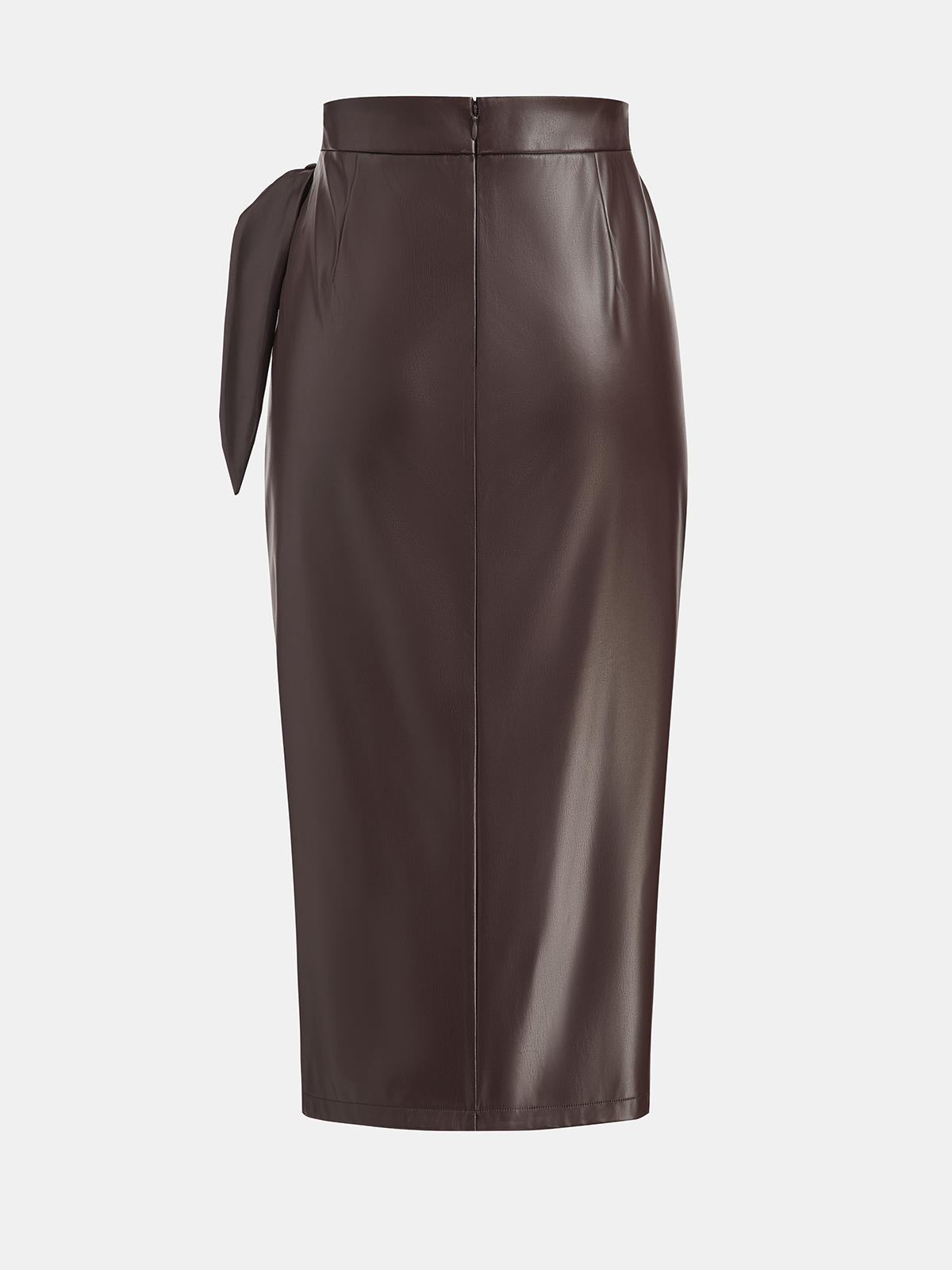 Tie-Wrap Faux Leather Skirt with Side Slit